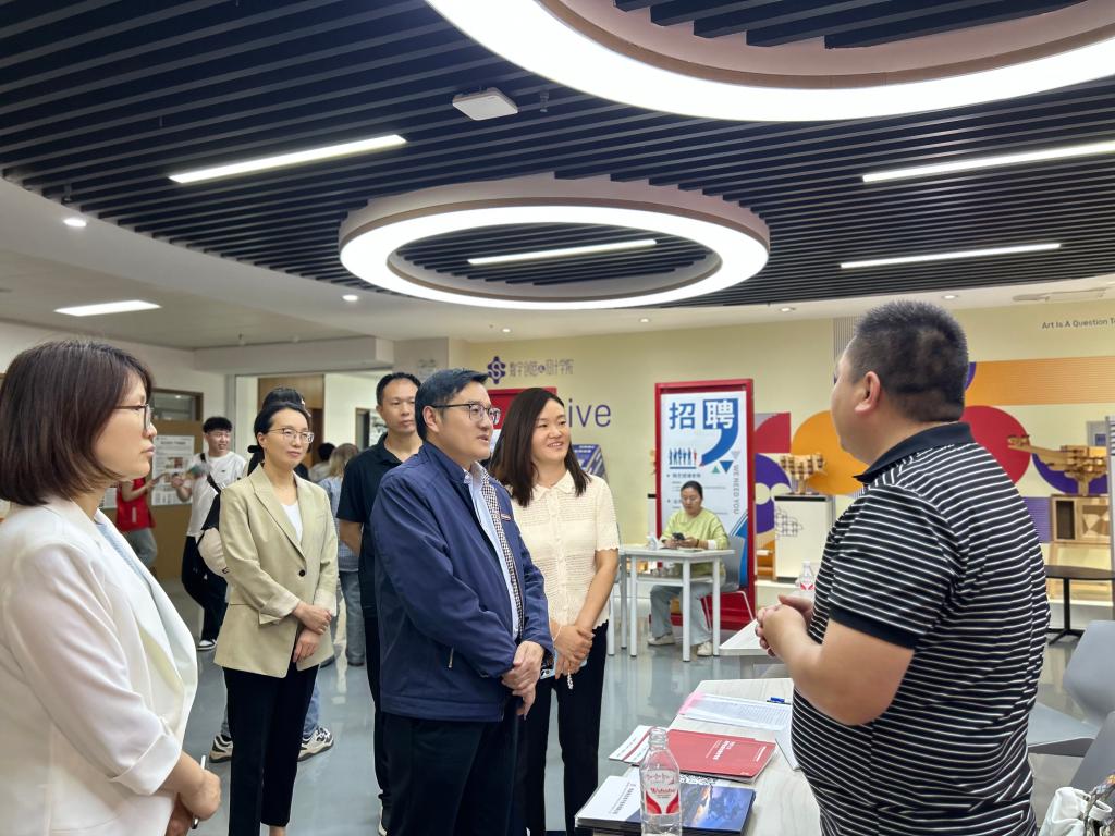 4月17日下午,yl234112025届毕业生专场双选会在合鼎楼举行。公司党委委员、副董事长任枫轩,党委委员、副董事长鲁冬,人才招聘处负责人刘蕤赴现场调研指导,与招聘企业和毕业生亲切交谈。华埔装饰、郑州新发展绿化管养运营有限公司等30余家用人单位参会,为数创专业员工提供就业岗位150余个。
