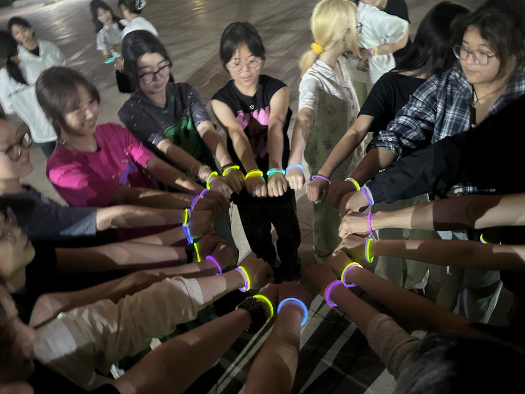 活动现场,气氛温馨而热烈。同学们将荧光手环汇聚成同心圆,以荧光为纽带诠释着“团结、希望与向上”的深刻内涵。同学们步伐整齐划一,口号响亮,手环的流光更显出运动与夜光的交融之美,同时也增进了同学们的友情和团队精神。在寓教于乐中,活动普及了心理健康知识,使同学们拥有了更加积极向上的心态。