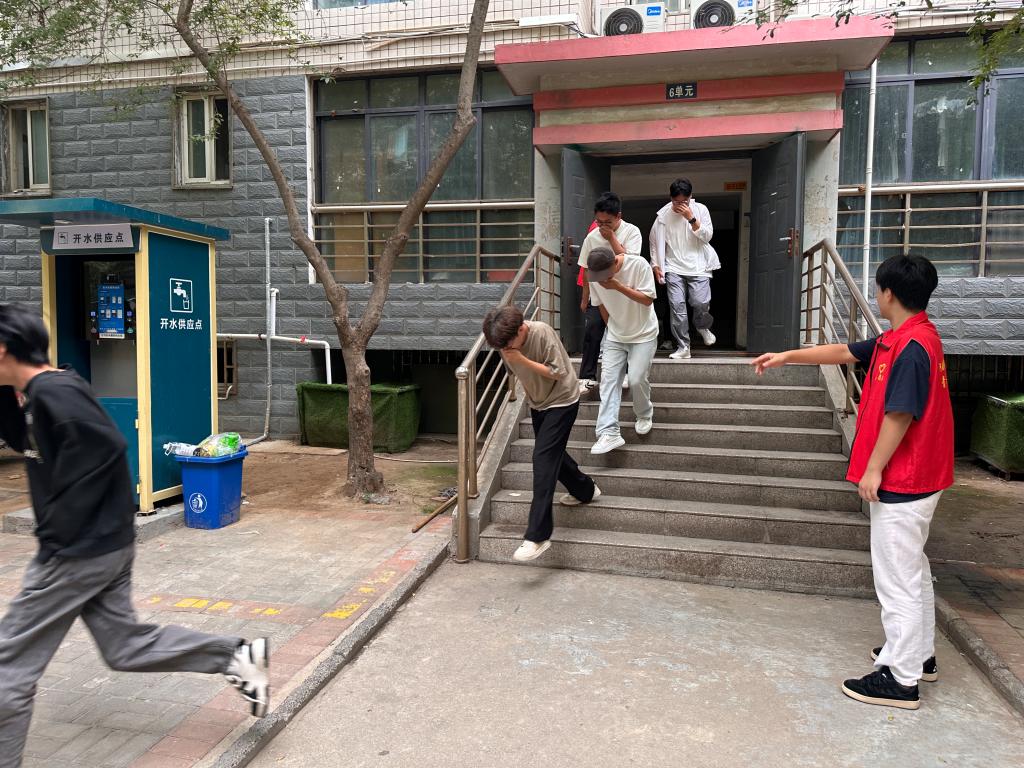 随着消防预警哨声响起,演练正式拉开帷幕。宿舍安全员迅速反应,组织员工用湿毛巾捂住口鼻,弯腰低姿,按照预定疏散路线,有序、快速地撤离宿舍楼,向操场安全区域疏散。整个过程中,工作人员分工明确、配合默契,行动有序。抵达安全区域后,各班迅速清点人数,确保无一人遗漏,并及时向现场指挥报告。