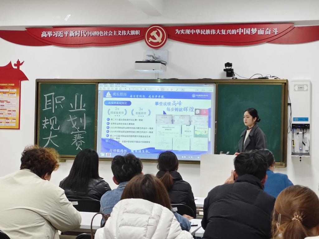 比赛现场氛围热烈,选手们围绕自我认知、职业环境分析、职业目标确立、路径规划、行动计划及评估调整等核心内容,结合数字创意领域的行业趋势与自身专业特长,进行了条理清晰、富有感染力的展示。