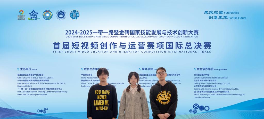 近日,一带一路暨金砖国家技能发展与技术创新大赛首届短视频创作与运营赛项总决赛在兰州职业技术公司举行。yl23411员工崔天乐,苗清华,唐岩在全国95支队伍中脱颖而出,以优异的成绩,获得大赛高职组一等奖。