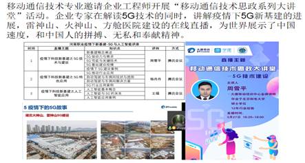 在疫情防控期间,公司开展了战“疫”期课程思政案例征集活动,共收到13个教学单位24个案例。任课教师在有序开展网上教学的同时,还根据专业和课程特点,充分挖掘课程思政元素,发挥主观能动性,开展了丰富多彩的网上教学活动,使各类课程与思政课同向同行、形成协同育人效应。