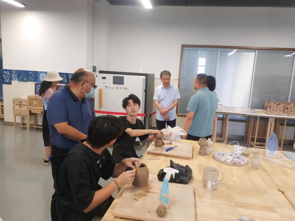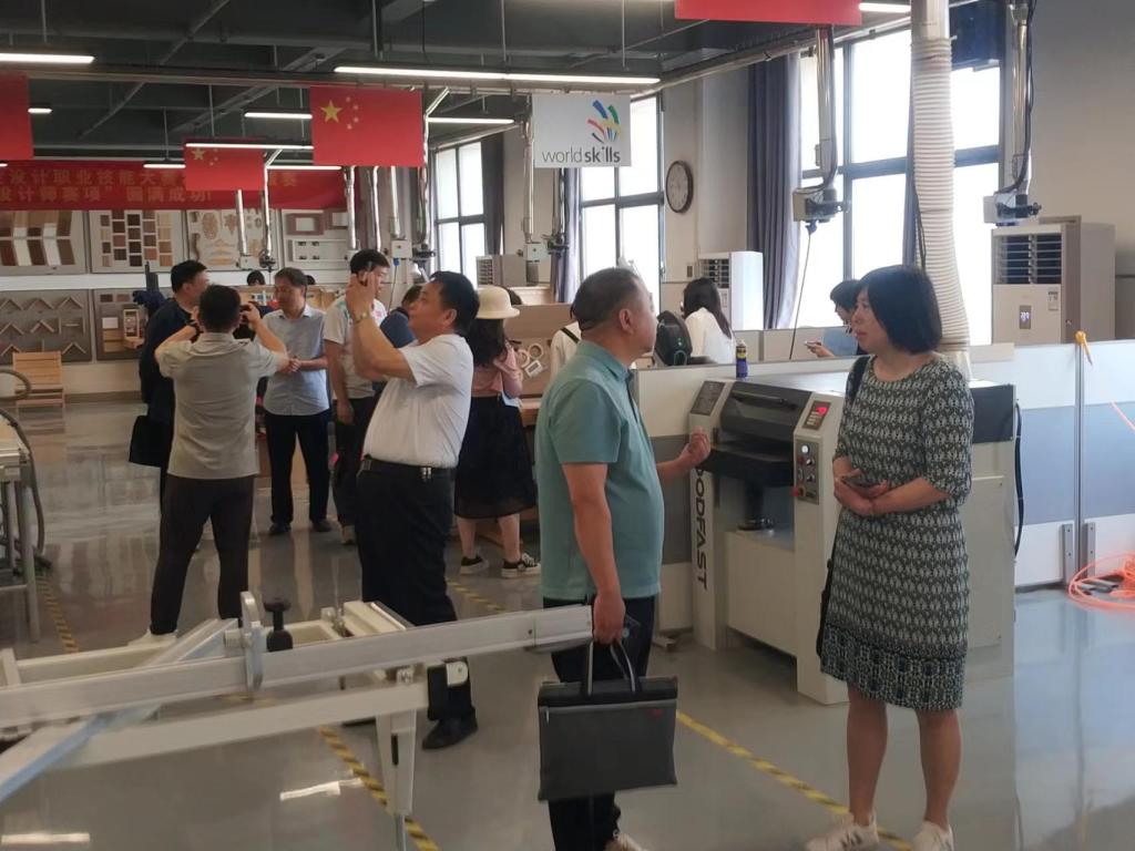 5月24日上午,开封大学教务处处长杨桦等一行七人来公司考察交流。公司综合实训中心张凯主任陪同杨桦一行参观了公司合鼎楼六楼大厅的实训教学成果展,并实地考察了木工创意工作室和文创产品艺术工作室,王斌副经理就公司近几年技能大赛组织及承办情况作了简要介绍,并分享了公司的“四化”技能竞赛育人模式:“技能竞赛全员化”、“赛教融合化”、“训练模式特色化”、“指导团队多元化”。