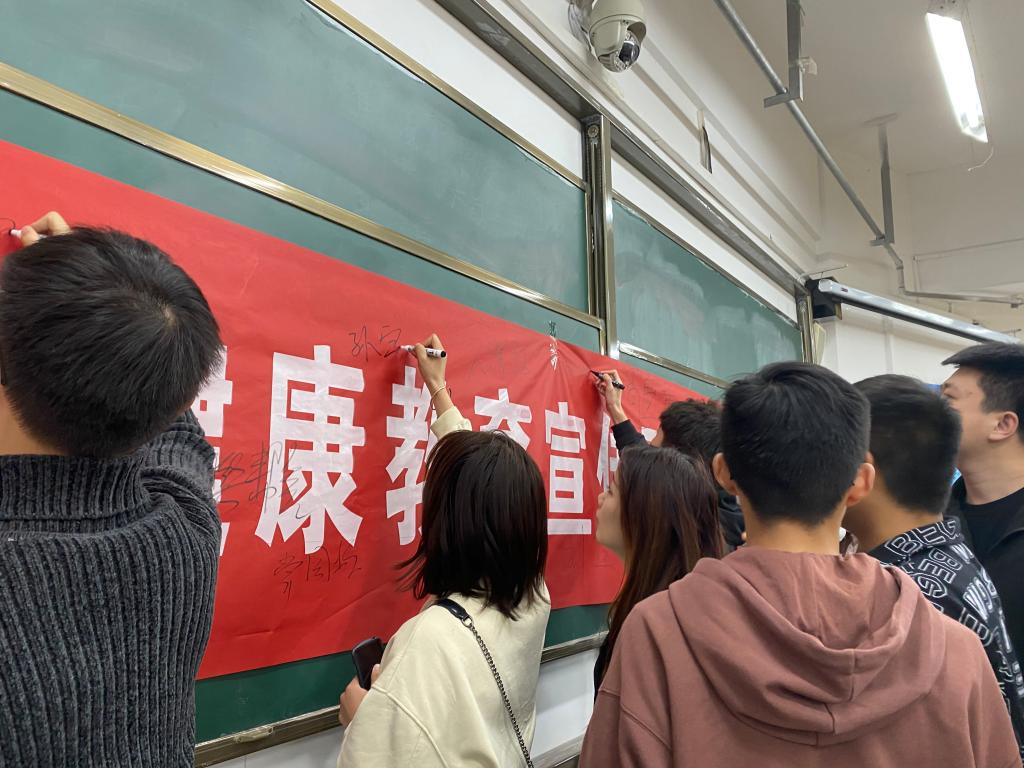 最后同学们在条幅上进行了签名留念。