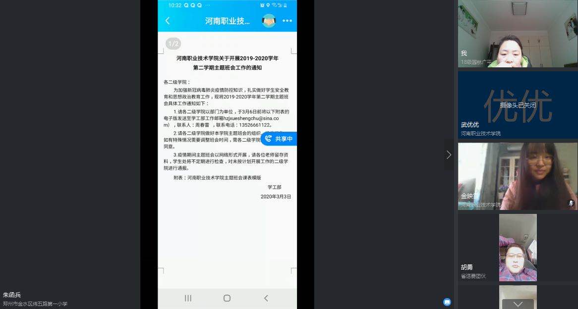 3月4日上午,环艺公司通过钉钉网上会议平台召开员工管理工作例会,公司全体专兼职辅导员参会,公司党总支副书记王静主持会议。