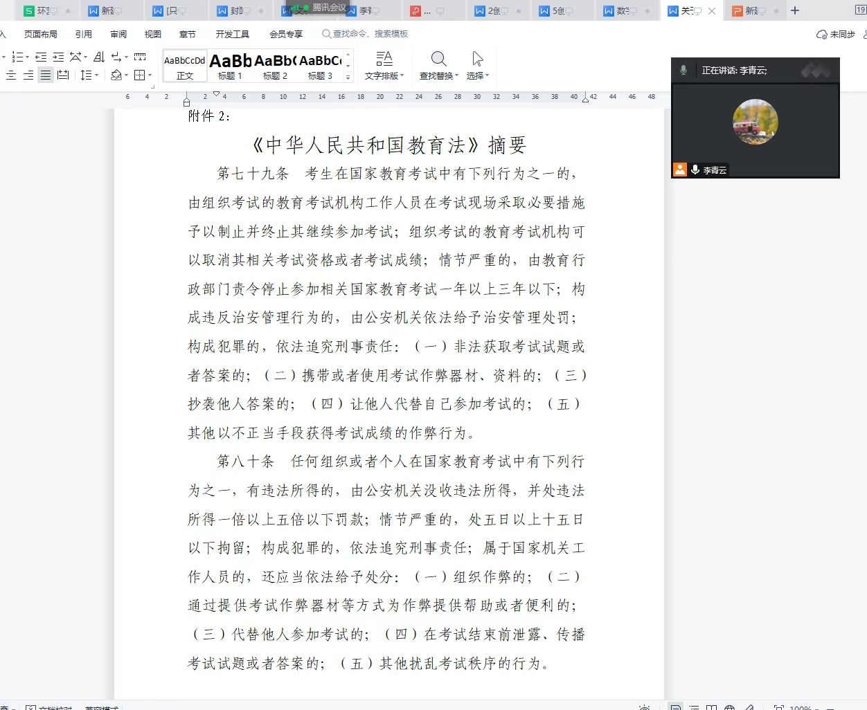 通过腾讯会议,领学了《中华人民共和国刑法》、《中华人民共和国教育法》、《国家教育考试违规处理办法》等重要篇章;通过学习引导,使考生全面了解了诚信守信是中华民族的传统美德,也是一个人应有的基本道德品质,信守诺言的行为品质对个人成长具有重要意义。