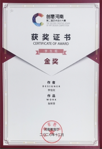 产品艺术设计专业产品191班 李佳欣 《鱼鲜香》 金奖