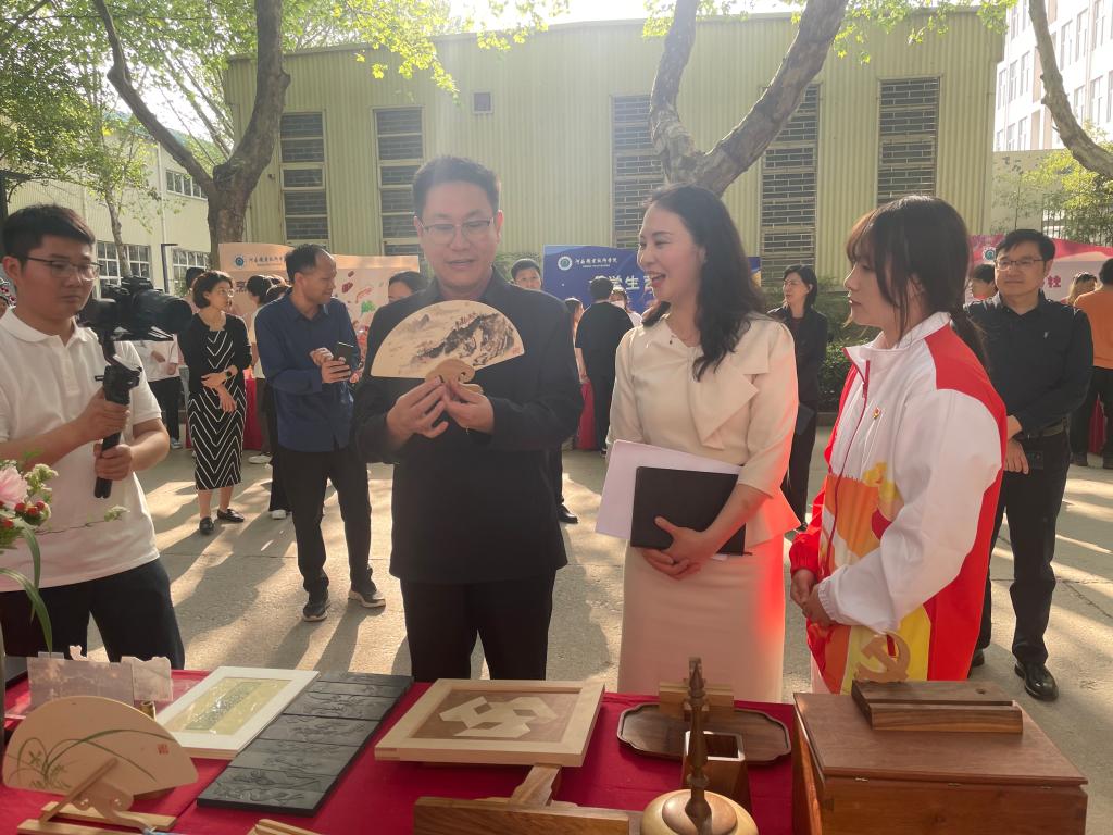 活动期间,公司党委书记厉励,党委副书记、纪委书记田华,在相关部门负责人的陪同下来到现场巡展,与各位参展同学进行交流沟通。厉书记认真观看员工作品,详细了解不同专业、不同形式、不同风格的作品内涵、创意来源,对参展的花艺、产品设计、家具设计等作品展现出来较高的艺术水准和创意思维给予了肯定和赞赏,并鼓励同学们不断创新开拓,锤炼本领,增长见识。