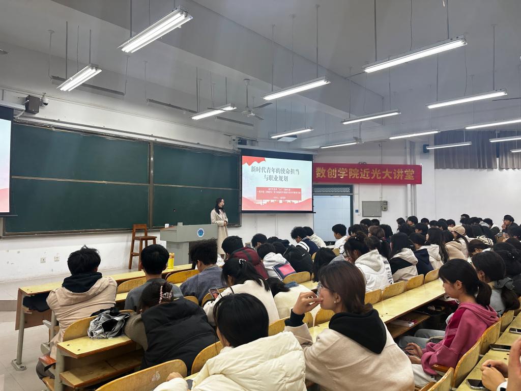 为深入学习宣传党的二十届三中全会精神和习近平新时代中国特色社会主义思想,牢记习近平总书记在党的二十大上对广大青年提出的“立志做有理想、敢担当、能吃苦、肯奋斗的新时代好青年。”的讲话精神。11月16日,数创公司在1105教室和1206教室举办近光大讲堂活动,活动邀请“1+1”互融共建基层党组织,教务处(质量办)党支部的李奇老师和薛绍华老师,以“新时代青年的使命担当与职业规划”为题为公司青年学子上了一堂生动的思政课。