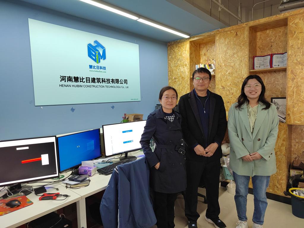 4月9日上午,数字创意与设计公司工程造价教研室主任樊松丽、专业教师李静带领21级、22级20余名同学走访河南慧比目建筑科技有限公司。该公司经理胡照广介绍,公司业务主要包括建筑工程技术咨询、技术服务、技术转让;建筑工程设计;市政工程设计与施工;公路工程设计与施工等。